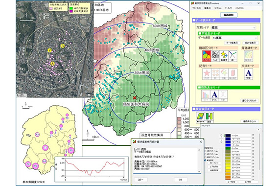 地図と統計データを組み合わせて地域を可視化する分析ツールGIS(Geographic Information System)を用いて、人口、交通、産業、災害などの多様な情報をもとに地図化したうえでその現象を読み解き、地域を科学的に分析するための方法を学びます。まちづくりや地域政策に直結する「考えるチカラ」と「伝えるチカラ」の双方を培い、地域のデータサイエンスとしての実践的な技術を修得します。