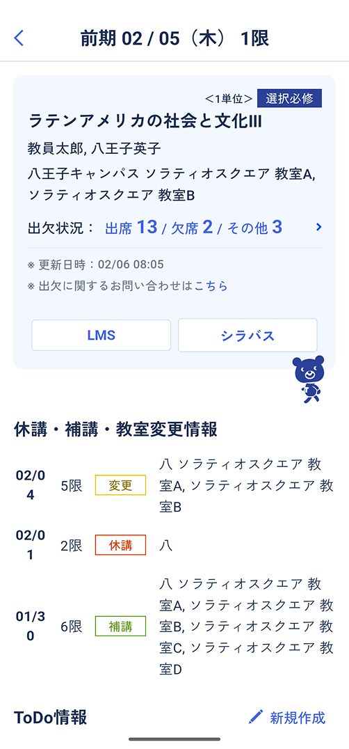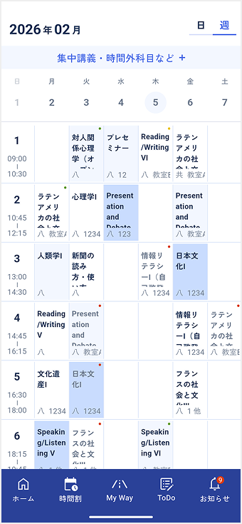 開講教室も把握できるので、効率的に準備や移動ができます。