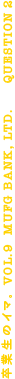 三菱 UFJ 銀行入行後は、支店で営業について学び、その後東京本部の部署で企画業務を経験。以後も支店や信託銀行で実務を重ね、MUFG ウェルスマネジメントの立ち上げ、信託銀行とのアライアンスを担当 しました。業務の傍ら大学院で MBA を取得し、37 歳で三菱 UFJ 銀行代々木上原店の支店長に就任しました。